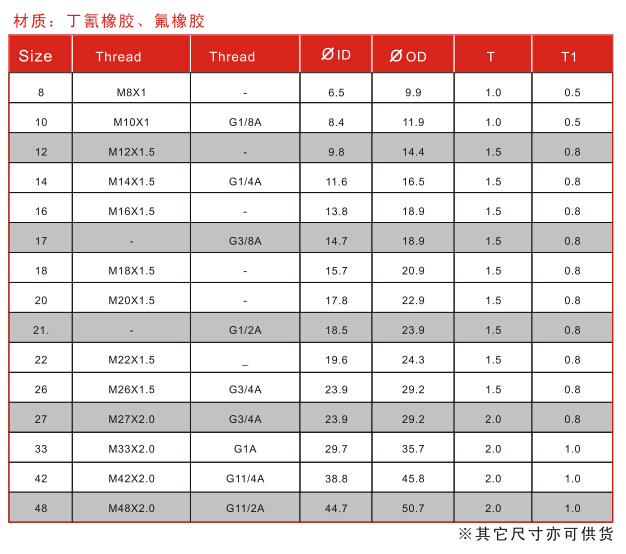 材料:丁晴橡膠/氟橡膠;